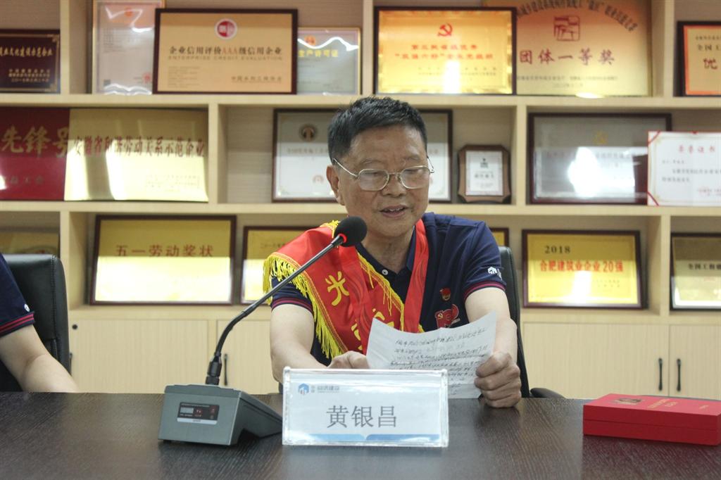 黃銀昌同志為肥東水安公司(安徽同濟建設集團前身)最后一任總經(jīng)理。在公司組建黨總支、成功升特等方面作出突出貢獻。2017年1月,黃銀昌光榮退休。2019年,同濟集團授予黃銀昌“終身榮譽員工"稱號。 “光榮在黨50年”紀念章獲得者、“同濟集團終身榮譽員工”黃銀昌:首先,向黨組織對我無微不至的關懷表示感謝。雖然我年齡上已退休,但是共產(chǎn)黨員的責任和義務永遠不能退休,我永遠忠于黨,忠于人民。不管發(fā)生什么情況,堅決做到思想上不變質(zhì)、行動上葆忠誠。為黨的事業(yè)作出自己應有的貢獻,永不叛黨。 今天是喜慶的日子,能和各位領導、同仁歡聚一堂,共同慶祝中國共產(chǎn)黨成立100周年感到無比激動,在這個特別的日子,有幾句話想和大家共勉: 1、廣大黨員職工要在各自的崗位上爭做先鋒,兢兢業(yè)業(yè)地工作、勤勤懇懇奮斗、默默無聞地奉獻,為同濟集團建設、為社會主義建設添磚加瓦。 2、不忘初心,牢記使命。把初心使命化作對黨忠誠,勇于擔當、無私奉獻的實際行動。做一名對黨、對社會、對企業(yè)負責任的合格黨員,發(fā)揮共產(chǎn)黨員的先鋒模范作用,為同濟集團建設成為建筑行業(yè)的標桿企業(yè)而奮斗。