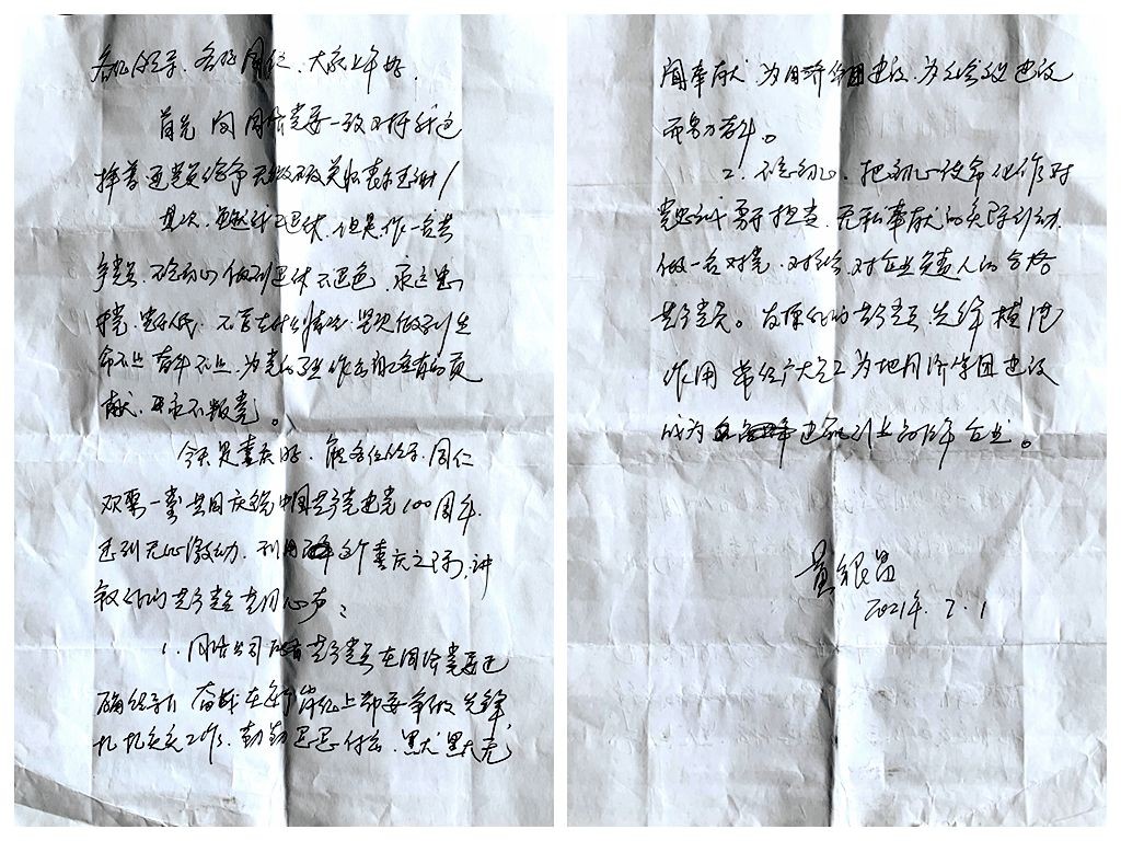 “光榮在黨50年”紀念章獲得者黃銀昌的手稿