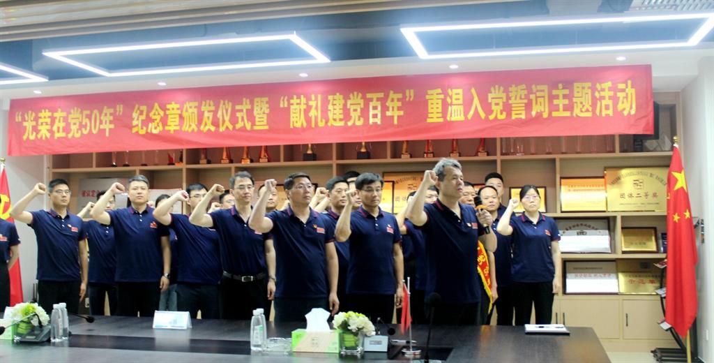 2021年7月1日,偉大的中國共產(chǎn)黨迎來百年華誕。同濟集團黨委舉行“光榮在黨50年”紀念章頒發(fā)儀式暨“獻禮建黨百年”重溫入黨誓詞主題活動。同濟集團黨委書記、董事長吳曉東帶領黨員代表重溫入黨誓詞。現(xiàn)場黨員代表高舉右手,對著黨旗,重溫入黨誓詞。 紀念是為了更好地傳承。為了體現(xiàn)這種賡續(xù),集團黨委通過為老黨員頒發(fā)“光榮在黨50年”紀念章,引導廣大黨員干部牢記初心使命、傳承紅色基因、永葆奮斗本色!