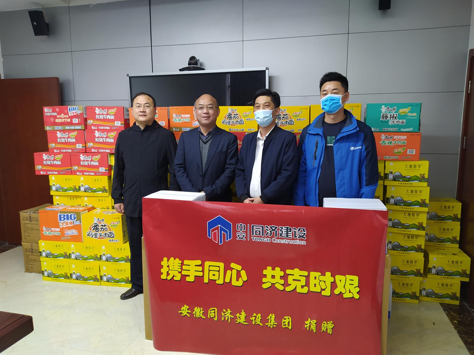 檢查組突擊抽查項(xiàng)目生活區(qū)并提出具體要求 各在建工程項(xiàng)目部對(duì)疫情防控工作有較高重視度,各項(xiàng)防疫措施落實(shí)到位,能夠及時(shí)根據(jù)最新防疫要求召開專項(xiàng)部署會(huì)議及防疫安全教育培訓(xùn),并積極響應(yīng)地方政府疫情防控相關(guān)部署,將疫情防控工作宣貫到位。 攜手同心 共克時(shí)艱 心懷責(zé)任,勇于擔(dān)當(dāng)!在此特殊時(shí)刻,同濟(jì)集團(tuán)積極響應(yīng)政府號(hào)召,肩負(fù)企業(yè)社會(huì)責(zé)任,積極為蜀山區(qū)疫情防控捐贈(zèng)了N95口罩、消毒液、礦泉水、方便面等各類防疫慰問物資,并向奮戰(zhàn)一線的值守人員表達(dá)崇高敬意。