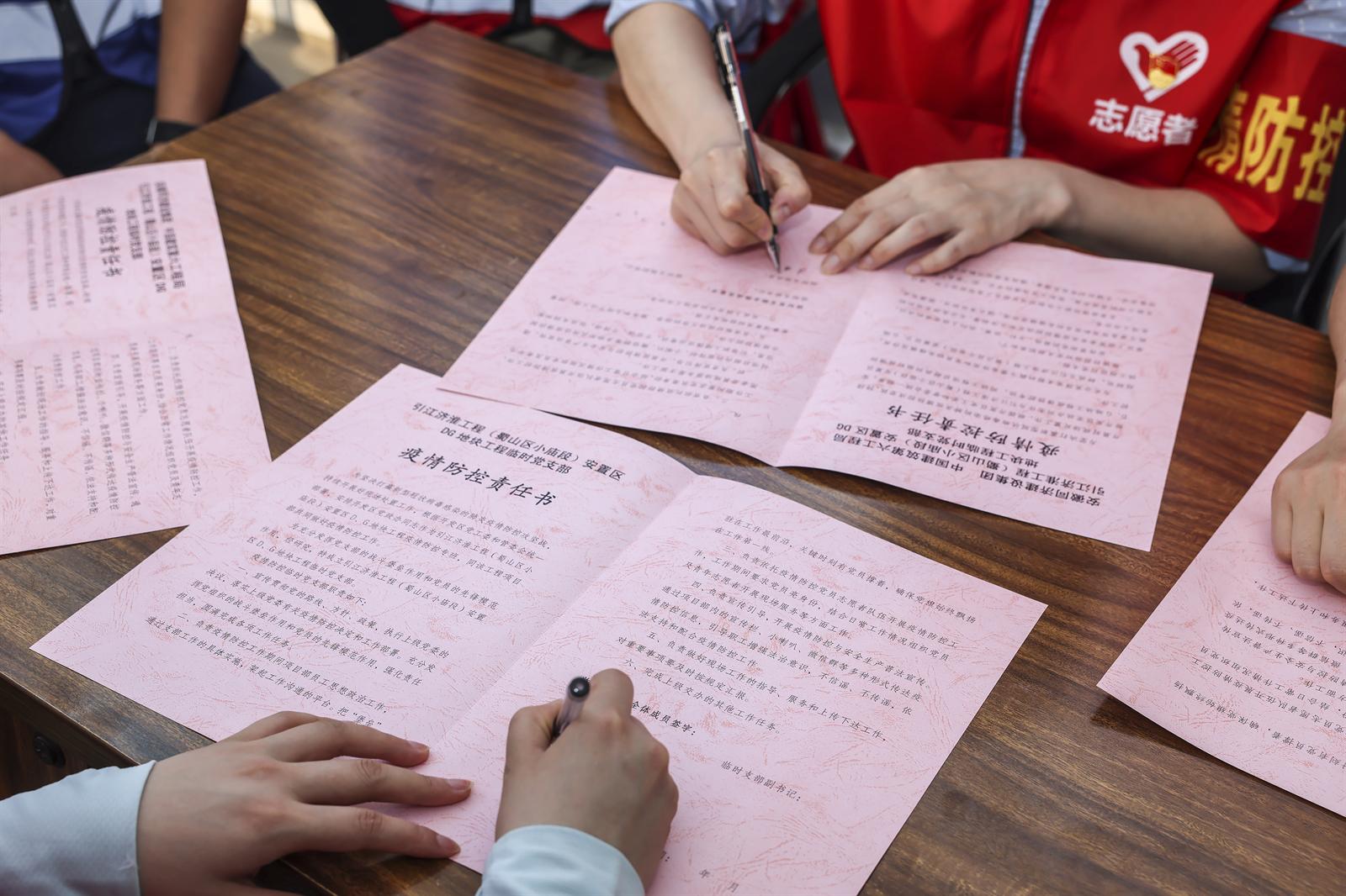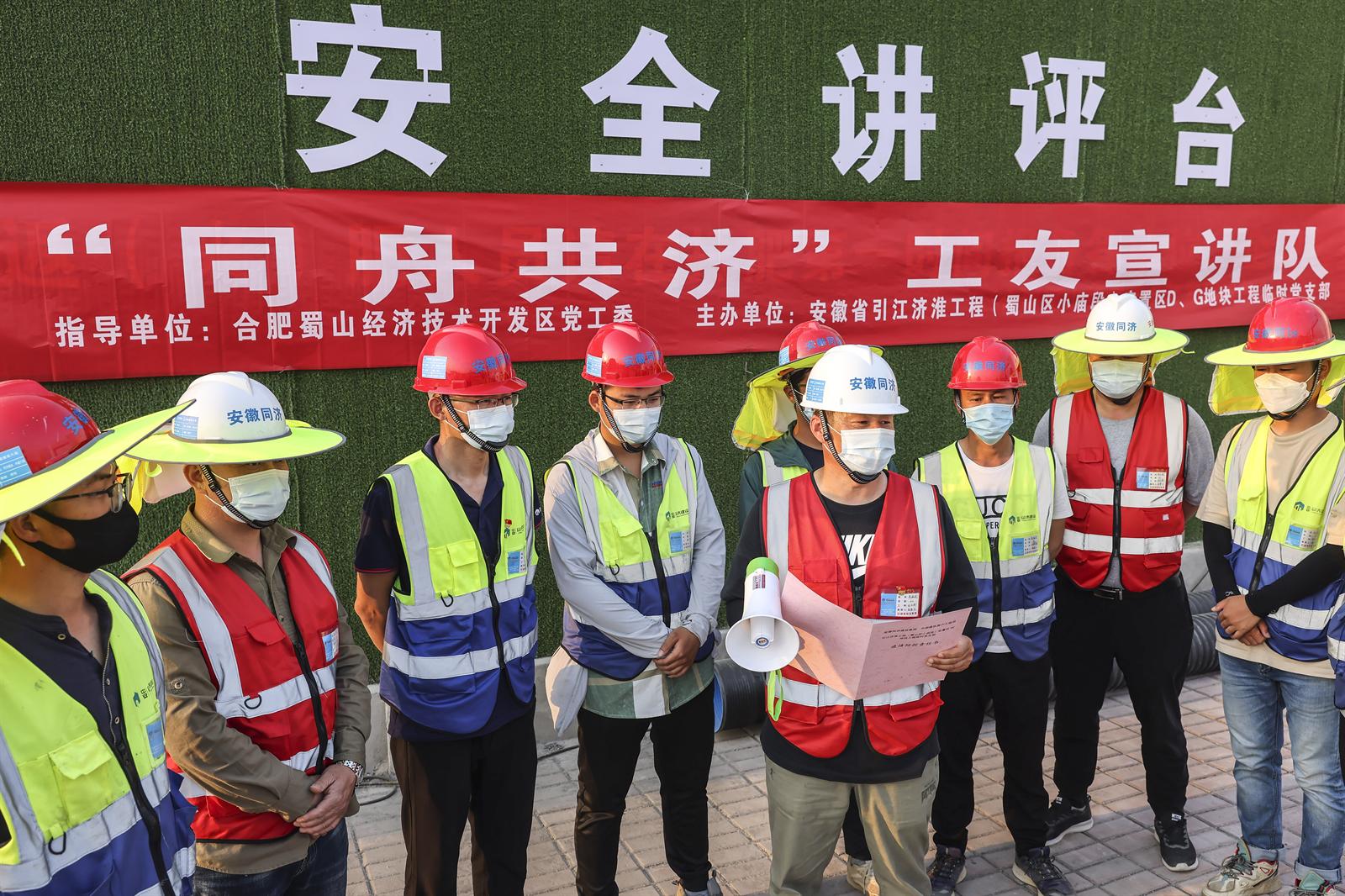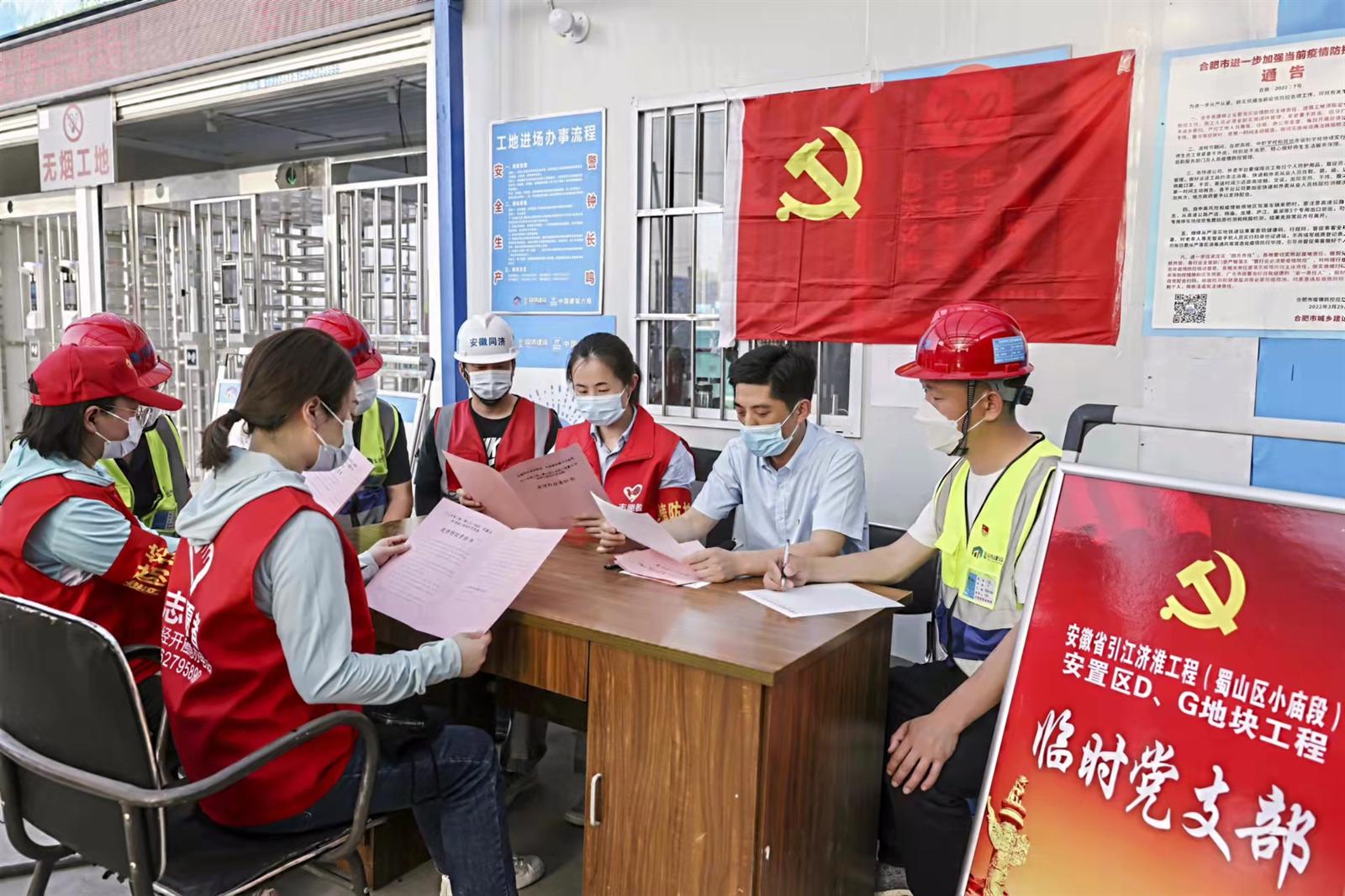“請(qǐng)居民們提前準(zhǔn)備好‘健康碼’‘行程碼’”、“請(qǐng)戴好口罩,保持一米距離……”。疫情就是命令,社區(qū)就是陣地。在各防疫卡點(diǎn),同濟(jì)集團(tuán)志愿者分成多個(gè)防疫小組,與現(xiàn)場(chǎng)負(fù)責(zé)人溝通銜接后,便迅速進(jìn)入“戰(zhàn)疫”狀態(tài),忙中有序、有條不紊地引導(dǎo)群眾掃碼注冊(cè)登記、核查雙碼、測(cè)量體溫等志愿服務(wù)工作,服務(wù)期間,全體志愿者充分體現(xiàn)了同濟(jì)人樂于奉獻(xiàn),積極回報(bào)社會(huì)的青春風(fēng)采,受到相關(guān)領(lǐng)導(dǎo)和服務(wù)群眾的一致好評(píng)。 黨建引領(lǐng) 筑牢防線 疫情就是命令,為全力保障做好建筑領(lǐng)域疫情防控工作,根據(jù)蜀山經(jīng)開區(qū)黨工委和管委會(huì)統(tǒng)一部署,安排開發(fā)區(qū)黨政辦5名同志作為引江濟(jì)淮工程(蜀山區(qū)小廟段)安置區(qū)D、G地塊工程疫情防控專班,同該工程項(xiàng)目部共同做好疫情防控工作。為充分發(fā)揮黨支部的戰(zhàn)斗堡壘作用和黨員的先鋒模范作用,開發(fā)區(qū)黨政辦會(huì)同同濟(jì)集團(tuán)黨委成立了引江濟(jì)淮工程(蜀山區(qū)小廟段)安置區(qū)D、G地塊工程臨時(shí)黨支部,簽署《疫情防控責(zé)任書》,督導(dǎo)項(xiàng)目防疫工作,構(gòu)筑疫情防控堅(jiān)實(shí)防線。
