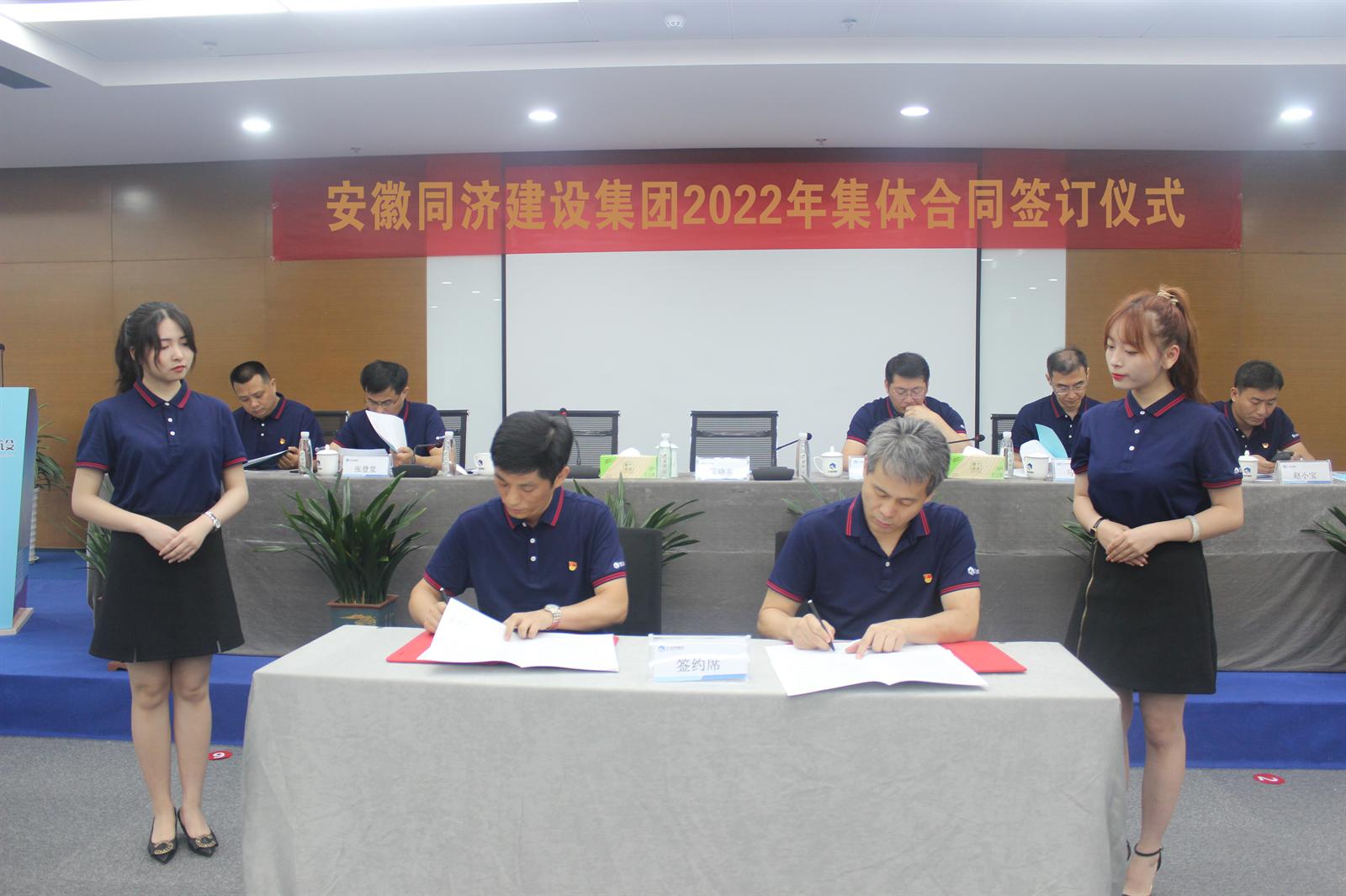 △2022年集體合同簽訂儀式 會(huì)上,黨委書(shū)記、董事長(zhǎng)吳曉東代表企業(yè)方,黨委副書(shū)記、工會(huì)主席劉長(zhǎng)豐代表職工方在集體合同上鄭重簽字,充分體現(xiàn)了同濟(jì)集團(tuán)對(duì)職工權(quán)益的高度重視和鄭重承諾。