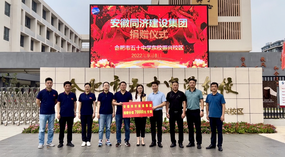 同濟集團赴合肥市五十中學(xué)東校振興校區(qū)開展愛心捐贈[ 作者:陳鎣喬 點擊數(shù):4127 更新時間:2022/09/09] 9月8日上午,同濟集團黨委副書記、董事、總經(jīng)理高先志一行赴合肥市五十中學(xué)東校振興校區(qū)開展愛心捐贈活動,為該校捐贈了價值70000元空調(diào),進一步改善學(xué)校辦學(xué)條件。孟斌校長代表校方熱情接待高先志一行。蜀山經(jīng)開區(qū)黨工委委員賀麗麗出席活動并講話。