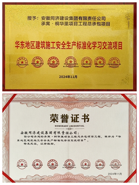 此外,華東地區建筑安全聯席會發布《關于2024年度華東六省一市建筑施工安全生產標準化工地學習交流項目公示》,同濟集團承建的承寓·桐華里項目獲評“華東地區建筑施工安全生產標準化學習交流項目”。 該項目是同濟集團承建的裝配式EPC總承包項目,是合肥安居集團首個自建租賃社區項目,也是全國首個保障性智慧租賃住宅項目,被合肥市房產局評定為合肥市7個智慧住宅建設示范項目之一。2023年12月,住房和城鄉建設部建筑市場監管司領導到合肥實地調研了同濟集團承建的“承寓·桐華里”項目,指導合肥市智能建造試點工作。項目獲評“安徽省建筑安全生產標準化工地”“安心工地”試點項目等榮譽。 |