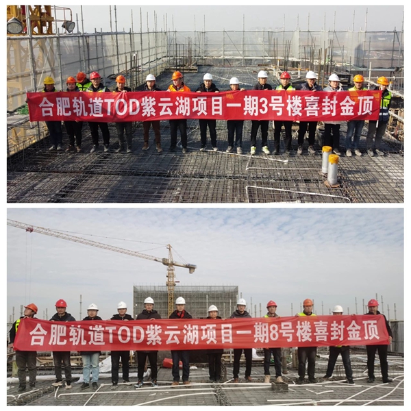 新年好彩頭!同濟集團承建的合肥軌道 TOD 紫云湖項目一期施工總承包項目首開區喜封金頂