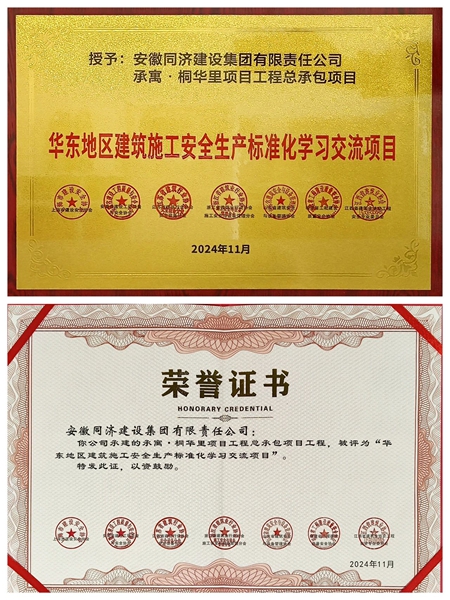 近日,在2024年建筑業安全生產管理經驗交流會暨建設工程項目施工工地安全生產標準化項目觀摩會上,承寓·桐華里項目獲評“2024年全國建設工程安全生產標準化工地”榮譽稱號。