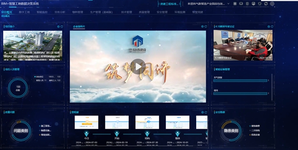 該項目自開工以來,組建了以項目經理為第一責任人的智能建造領導小組,同時配備智能建造相關技術人員指導實施。按照相關文件要求及現場實際制定了智能建造方案,明確智能建造在項目中的整體要求、實施計劃、組織管理和應用場景,引入數字孿生技術,以BIM技術、虛幻引擎技術為數據展示支撐,連接智能建造機器人、物聯網平臺及智慧工地平臺,將動態和靜態數據結合,通過搭建的數據駕駛指揮艙進行同步呈現,真實、實時展現現場情況,為項目管理團隊打造一個智能化“戰地指揮中心”。
