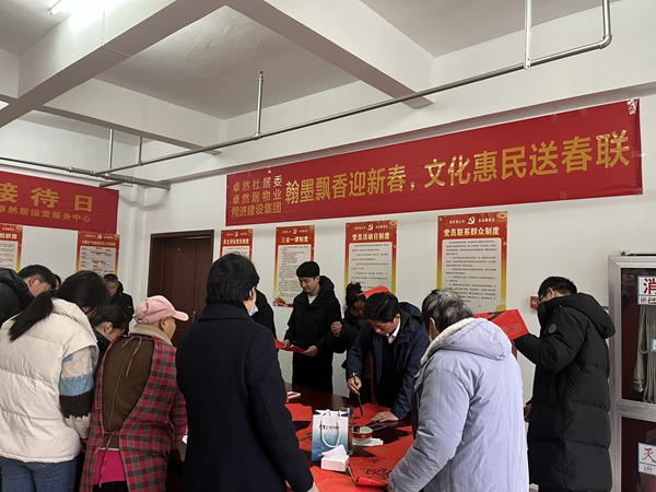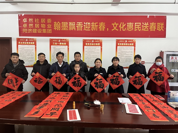 1月18日,同濟集團聯合卓然社居委及物業公司在卓然居小區舉辦“翰墨飄香迎新春,文化惠民送春聯”活動。書法家們揮毫潑墨為轄區居民送春聯、送“福”字,活動現場翰墨飄香、喜氣洋洋。