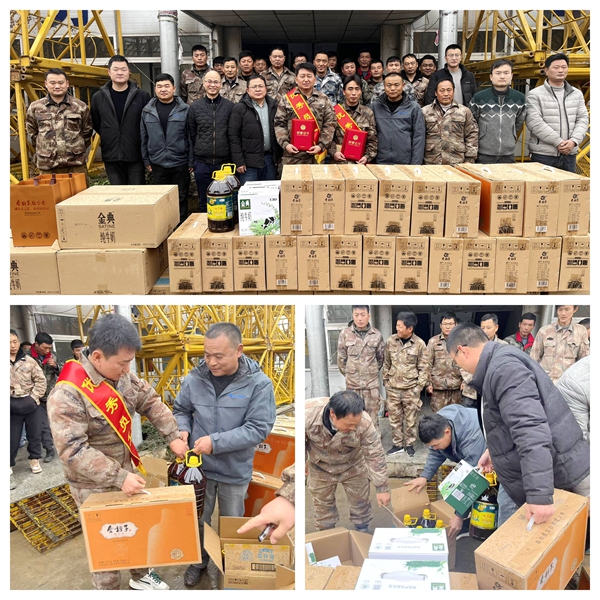 春節前夕,同濟集團工會為合肥經開區臨湖社區困難群眾送去新春慰問金。德渡機械公司召開總結表彰大會并為安拆隊員送上節日禮包,向他們一年來辛勤付出表示感謝,祝福他們新春快樂。