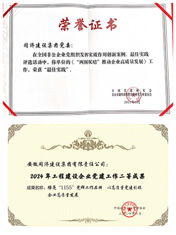 在開展課題研究方面持續發力。同濟集團報送的《“兩圍雙培”推動企業高質量發展》案例獲得全國非公黨建發揮實質性作用“最佳案例”獎。《擦亮“1155”黨群工作品牌,以高質量黨建推動企業高質量發展》獲得全國工程建設系統黨建成果二等獎。《讓黨旗在建工一線高高飄揚》入選安徽省委組織部非公黨建典型案例。《激活黨建引領“驅動器”按下企業發展“快捷鍵”》入選合肥市委組織部“一線典型案例”。