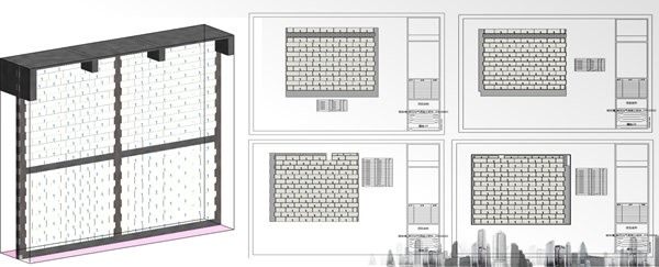 10、BIM砌體排磚及優(yōu)化,采用Revit插件進(jìn)行砌體排磚深化設(shè)計(jì)進(jìn)行砌體排布方案深化,有效節(jié)約砌體消耗量。