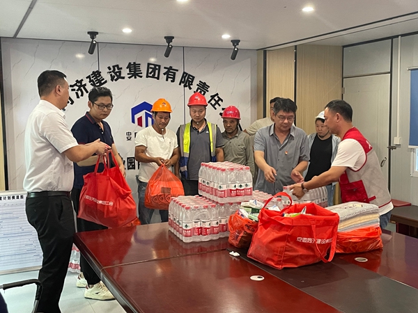 臨時(shí)聯(lián)合黨支部為建筑工人送上夏日關(guān)懷大禮包