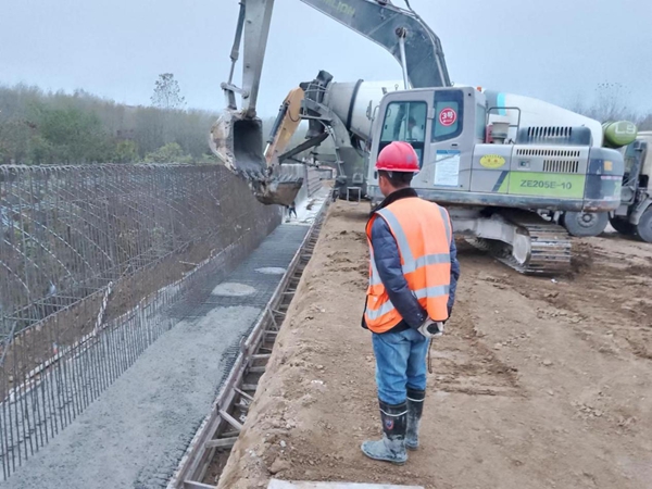2023年1月5日,合肥大科學(xué)裝置集中區(qū)魏武路(合淮路-譚崗路)道路工程-2標段緯一路工程擋土墻澆筑施工。
