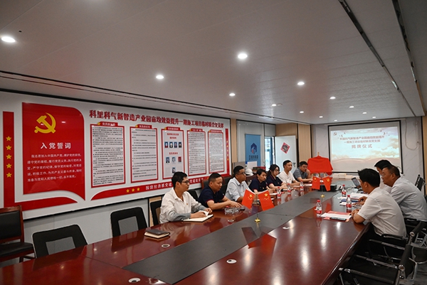 2023年10月20日,科里科氣新智造產業園畝均效益提升一期施工項目臨時聯合黨支部(下稱臨時黨支部)揭牌成立,這是蜀山城投公司首個項目臨時黨支部,也是同濟集團黨委重點打造的臨時黨支部。臨時黨支部將切實發揮戰斗堡壘作用,全力推進科里科氣智造產業園畝均效益提升一期施工項目各項重點任務落地落實,創建“紅色工地”,借力“紅色引擎”跑出科里科氣項目“加速度”。