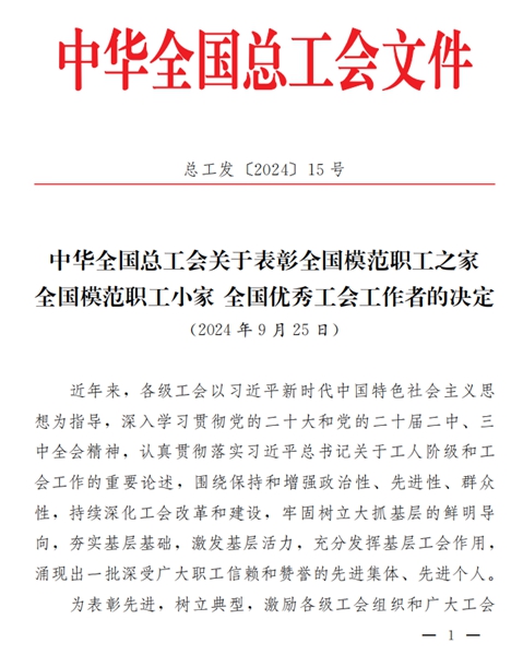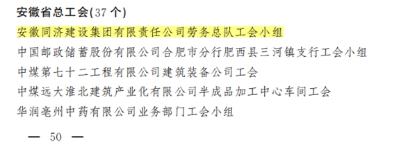 近日,中華全國總工會發(fā)布《關(guān)于表彰全國模范職工之家 全國模范職工小家 全國優(yōu)秀工會工作者的決定》,安徽同濟建設(shè)集團有限責(zé)任公司勞務(wù)總隊工會小組榜上有名,榮獲2023年度“全國模范職工小家”榮譽稱號。 “全國模范職工小家”榮譽稱號由中華全國總工會設(shè)立,是全國工會系統(tǒng)表彰先進班組工會小組的最高榮譽,是對基層工會小組工作的最高褒獎和肯定。