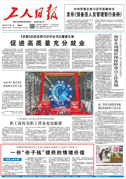 《工人日?qǐng)?bào)》2024年11月1日 第01版:《安徽同濟(jì)建設(shè)集團(tuán)設(shè)立互助互濟(jì)基金,涵蓋職工生活的方方面面——【娘家人暖心事】一份“份子錢”提供的情緒價(jià)值》