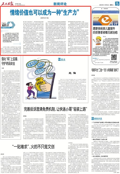 《工人日?qǐng)?bào)》 2024年11月5日 第05版:【社評(píng)】情緒價(jià)值也可以成為一種“生產(chǎn)力”